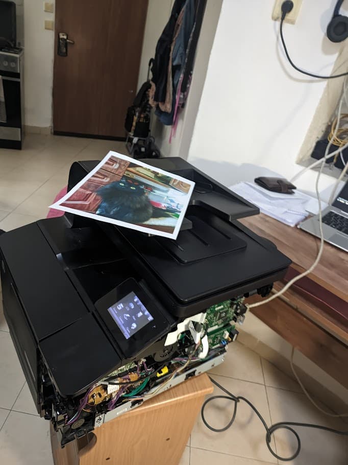 На нем лежит только что распечатанное фото одного их четырёх моих котов, которые тоже репатрианты! Мы все веселимся с женой, что их нужно проверить на наличие еврейских корней.