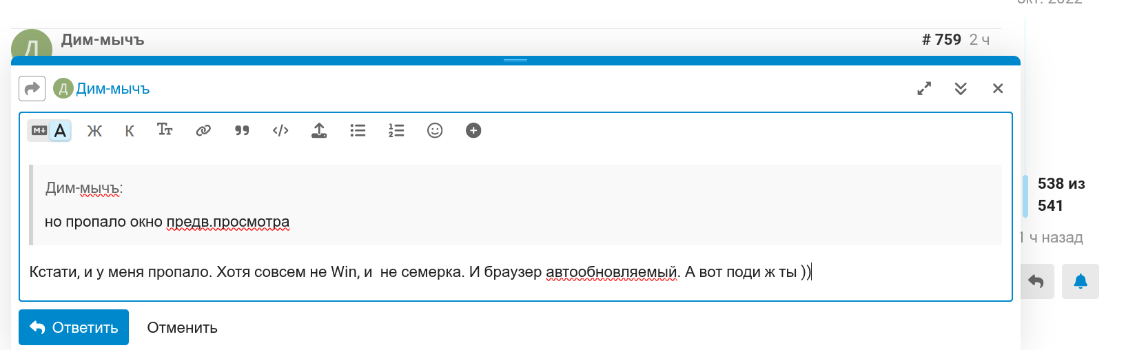 Кстати, и у меня пропало. Хотя совсем не Win, и не семерка. И браузер автообновляемый. А вот поди ж ты ))