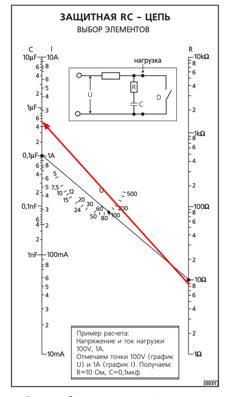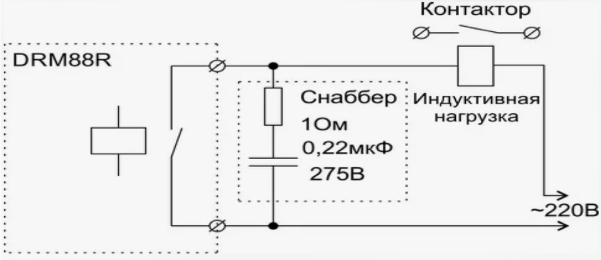 Если допустим небольшой ток через нагрузку в отключенном состоянии, то так. Иначе-параллельно нагрузке. Замерь сопротивление обмотки пускателя. R возьми 10-40%. С посмотри по номограмме.